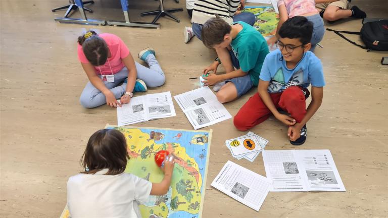 Wir haben Roboter programmiert und mit den Robotern etwas gespielt. Wir haben viel über Roboter gelernt. Mit den Blue Bots haben wir den Weg zum Schatz gefunden. Am besten gefallen hat mir mit den Thymios etwas zu machen, ins Zelt zu gehen und die anderen Schulzimmer zu besuchen.