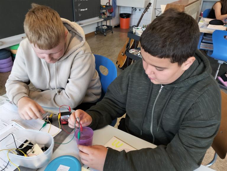 Wir hatten das Thema «Elektrizität». Gelernt haben wir vieles und auch sehr viele Experimente ausprobiert. Wir haben gelernt, wie Elektrizität funktioniert und wie man Schaltpläne zeichnet. Wir haben eine Ausstellung gemacht, wo die Eltern die Projekte, die wir vorbereitet haben, ausprobieren konnten. Es war eine coole Woche.