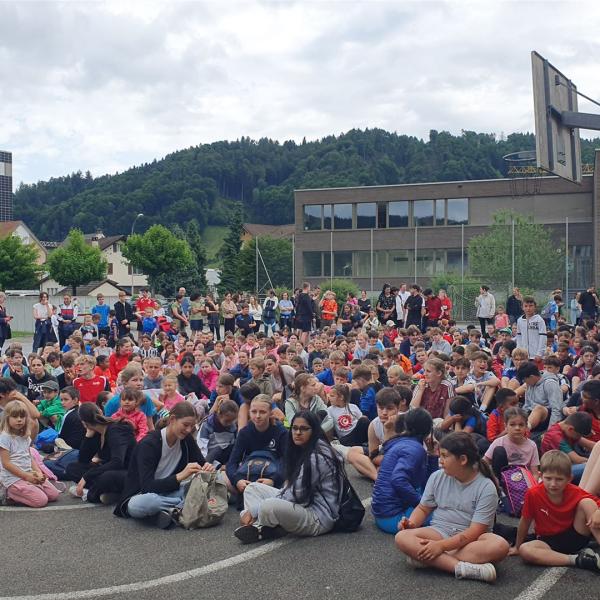 Im Anschluss fand der traditionelle Fussballmatch der 6. Klasse gegen die Lehrpersonen statt. Die Partie lockte auch in diesem Jahr viele Zuschauerinnen und Zuschauer an den Spielfeldrand und gehört bei der 6. Klasse jeweils zu einem der wichtigsten Programmpunkte des Sporttages. Das äusserts ausgeglichene Spiel entschieden die Lehrpersonen knapp für sich. Danach übernahm der Turnverein das Kommando für den schnellsten Nebiker.