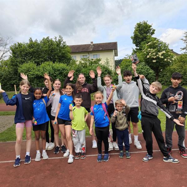 Nach dem Mittag traf sich die 3. Primar bis 3. Sek zum UBS Kids Cup. Dabei absolvierten alle die Disziplinen Weitsprung, 60m Sprint, Ballwurf und je nach Stufe noch weitere Disziplinen. Der Einsatz aller Kinder und Jugendlicher war gross und es resultierten hervorragende Leistungen –das Wetter war besser als erwartet und perfekt für sportliche Aktivitäten.